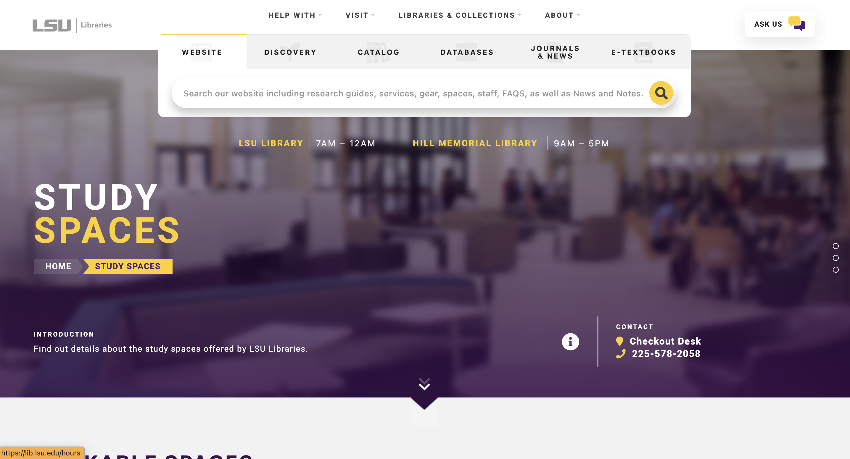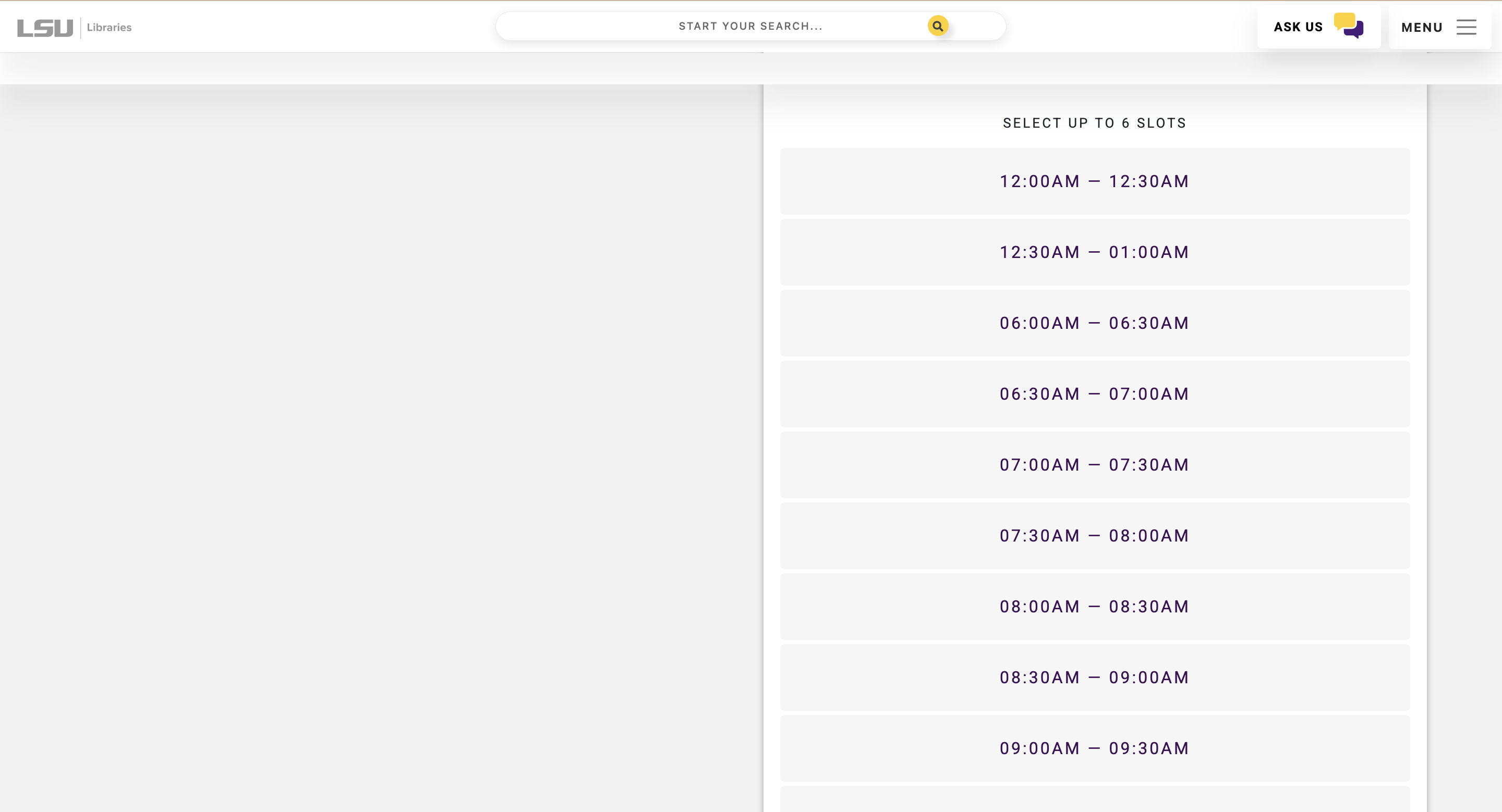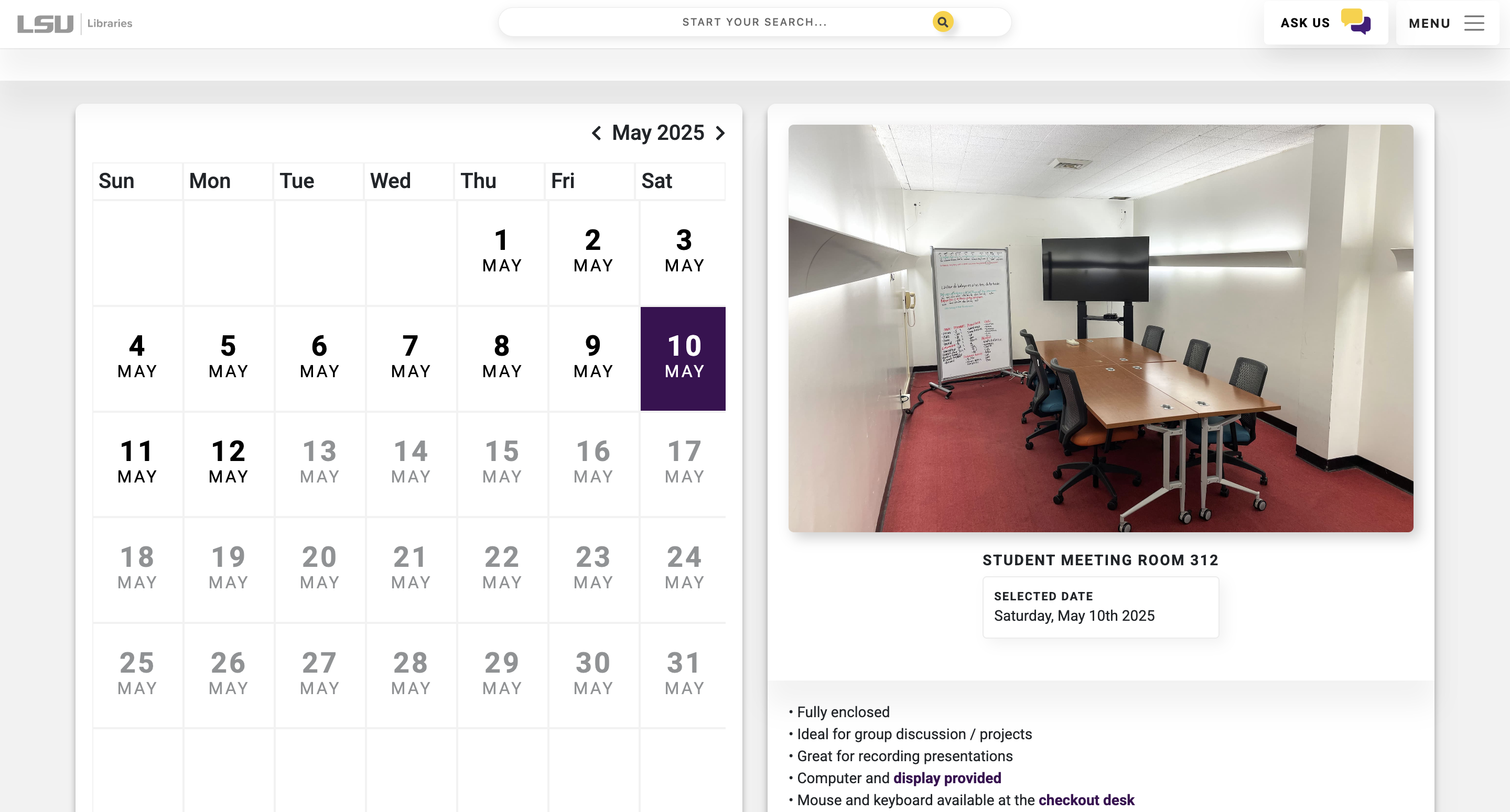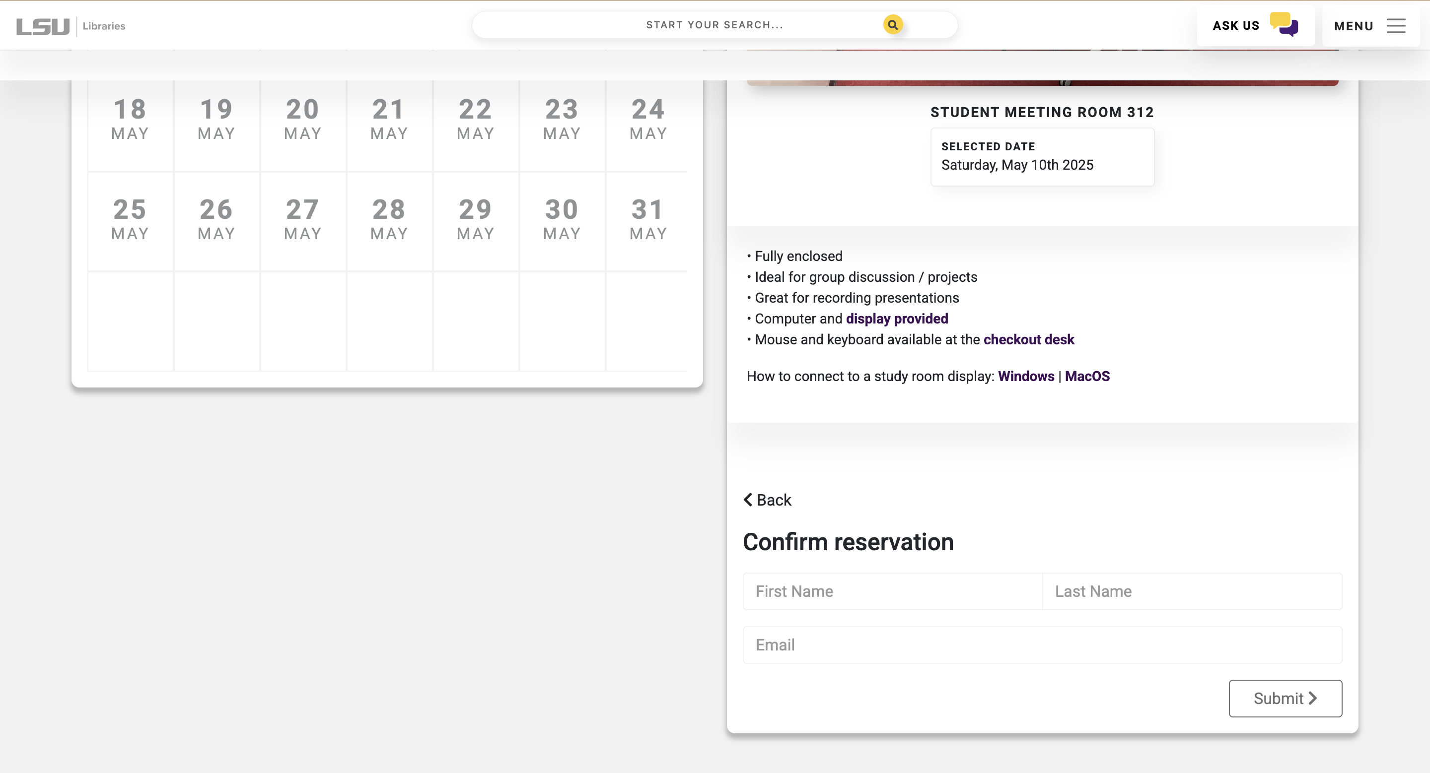 1. Visit the LSU Libraries website, then select a bookable space.